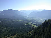 Sonn- u. Schattseitiger Weg / Gesäuser Direkt hinterm Kölblwirt geht der Weg einen kleinen Bach entlang hinauf und bis zum roten Bankerl hatten wir schon unseren Betriebspuls erreicht. Dort geht es links in den Wald hinein und in vielen Schleifen führt ein feiner und gut markiert Weg berglan. Ist die Schleiferei erledigt, wird der Weg flacher, wir mußten aber zwei kleine Bachläufe durchqueren, die natürlich auch mit entsprechendem Bewuchs aufwarteten, zum Glück wenig Brennesseln. Bald und gut verschwitzt erreichten wir die Forststraße, die auch gleich wieder abzufallen begann. Damit war der Aufstieg für diesen Teil so gut wie erledigt. Mittendrinn gönnten wir uns eine Pause, ein Jagdsitz bot uns feine Aussicht. Zu Beginn des letzten Drittels kreuzte der Kirchengrat auf die Ödsteine. Der Abstieg beginnt direkt bei einem Gedenkkreuz, wir waren aber vom Kreuz und dem knallroten Aussichtsbankerl danach so abgelenkt, daß wir erst kurz vor einer alten Scheune vor der Silberreitmauer den Fehler bemerkten. Schlimm war der Abstecher aber nicht, nur etwas "gemüsig". Also wieder zurück und schon hatten wir das Taferl zum Donnerwirt erblickt. Der weiter Abstieg gestaltete sich einfach und bald erreichten wir die Straße, der wir abwärts folgten. Am unteren Beginn der Schleife beginnt der Schattseitenweg und auch der Rotleiten Rundweg ist angeschieben. Wir besuchten aber noch die Kirche und den berühmten Bergsteigerfriedhof. Es ist schon beklemmend, wenn man ließt, wieviel Verunglückte dort liegen und wie jung sie oft waren. Dann wollten wir aber doch den GH zum Donner nicht links liegenlassen und gönnten uns eine Jause. Danach hieß es aber nochmal schwitzen, den rauf nach Rotleiten stiegen wir den Weg zur Mödlinger Hütte hinauf. Auch da schlängelt sich der Weg einen steilen Hang hinauf und wir transpirierten recht brav. Aber auch diese gut 150Hm waren bald erledigt und danach ging es hauptsächlich hinabi. Bis zur Einmündung des Schattseitenweges ist es dort etwas fad, nur selten ergeben sich Aussichten auf den Ödstein. Auch der weitere Weg ist nicht unbedingt ein Spektakel, wenngleich man etwas mehr Aussicht hat. Bald kreuzten wir den Weg, der den längeren Aufstieg über Niederberg und Spielkogel zur Mödlinger Hütte bietet (5 1/2h). Gleich nach dem Kneippweg waren wir schon wieder am Ausgangspunkt und es begann, entgegen aller Prognosen, etwas zu regnen. Trotzdem konnten wir noch eine Weile vor dem Gasthof sitzen, bevor der Ruf der Dusche zu laut wurde und wir uns auf's Zimmer verzogen. Es war eine kurze, gemütliche Wanderung, bei der der sonnseitige Teil wohl der feinere Teil war. Bilder habe ich auch mitgebracht. |