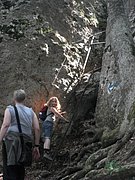 Hausstein und den Geizenberg Kenne ich nicht, mußte ich eingestehen, denn bisher bin ich nur unten rumgegrundelt. Wenn man durch die Myrafälle spaziert, dann gibt es ca. in der Mitte eine rot markierte Abzweigung, von der ein netter Weg in einem Bogen u.A. zum Hausstein (664m) führt. Zusammen mit Helga und Cornelia gönnte ich mir zuerst einen Spaziergang durch die Fälle und dann den Aufstieg über diesen Weg. Vorbei am sog. Wasserschloß geht es tlw. etwas steiler rauf, bis man die mächtige Felswand erreicht, die mit Kletterrouten durchsetzt ist. Der Wanderweg führt um diese Wand herum und so gelangten wir problemlos rauf. Die Aussicht runter auf Muggendorf und Pernitz war schon sehr fein. Der weitere Abstieg zum Karnerwirt war dann einfach. Bis knapp vor den Rieglhof ging es auf Asphalt weiter gen Westen. Dort biegt links der 231er in Richtung Gutenstein und Purbach ab, wir folgten. Oberhalb des Steinbruches bogen wir rechts ab und gelangten so langsam an die Ostflanke des Geizenberges (921m), den wir heute auch noch "schnupfen" wollten. Im Forum habe ich die Info erhalten, daß der Aufstieg vom oberen Ende des Schindertales (also SSW) am Besten geht, aber wir stießen relativ schnell auf Forstwege, die recht direkten Kurs nahmen. Obwohl es teilweise eine rechte Astlsteigerei war, kamen wir gut weiter und bald war der Gipfelbereich sichtbar. Am Schluß mußten wir noch etwas weglos durch den lockeren Wald hirschen, aber das war kaum ein Problem. Schnell war dann auch der höchste Punkt beim Steinmann erreicht und wir gönnten uns eine verdiente Pause. Man hat zwar nicht viel Aussicht, aber hinter den paar Baumwipfeln liegt rechts das Kieneck, in der Mitte der Rücken, über den der Enziansteig führt und links der Traflberg, der den Unterberg verdeckt. Bald ging es weiter über den Rücken und dort öffnete sich auch ein Fenster um diese Höhen auch bewundern zu können. Oben führt ein schüchternes Wegerl den Rücken entlang, dem wir leicht folgen konnten. Etwa bei der tiefsten Stelle, bevor es wieder zum Nebengipfel hinaufgeht, konnten wir eine kleine Wegkreuzung erahnen, von der aus je ein Wegerl nach links und nach rechts führt. Links konnten wir eine dürftige Forststraße sehen, auf die wir später auch trafen. Wir gingen aber noch weiter bis wir auch den zweiten Gupf des Berges erreicht hatten. Auch dort war die Aussicht fein und offene Flächen luden zum Abstieg ein. Wir folgten aber einer sehr dünnen Steigspur nach Osten, die sich bald verlohr. Wir erreichten den vorhin angesprochenen Forstweg, der uns einfach und bequem im SSO-Zipfel zu der mehr oder weniger um den Berg laufenden Straße brachte. Wir dachten kurz an, den Berg zu umrunden, aber auf Grund der schon etwas vortgeschrittenen Stunde, wählten wir den einfachen Rückzug wieder in Richtung des Steinbruches. Die Myrafälle durchschritten wir diesmal auf ihrer ganzen Länge und konnten so auf einen sehr feinen Wandertag zurückblicken. Dank an die Mädels, daß sie so brav auch die eher fragwürdigen "Wege" ohne Murren beschritten haben. Die vielen Eindrücke habe ich natürlich auch festgehalten. |