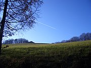 Bisambergs zwischen Äckern und Waldhain entlang. Eine sehr