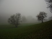 Semmering auf's Stuhleck Wir folgten weiter dem ganz gut markierten Weg (Nr.7) teilweise recht steil berglan. Mal über lauschige Waldwegerl, dann wieder breite Pistenwiesen, gelangten wir zur Friedrichtshütte (1307m). Für zwei verschwitzte Wanderer ist der Bau schon fast etwas zu groß und vielleicht auch einen Tick zu nobel, aber jedenfalls gut für einen Tee, der uns half etwas Wärme in die nebelfeuchten Knochen zu bekommen. Lang hielten wir uns nicht auf, sondern strebten bald wieder gipfelwärts. Vorbei am Luiserlkreuz und der Schwaigerhütte (1539m) schnauften wir noch steil rauf. Auf der Ganzeben stieg dann die Laune deutlich, denn erstens wurde es endlich flacher, zweitens war der Gipfel nicht mehr fern und drittens wurden wir von den ersten Sonnenstrahlen geküßt. Noch war der Nebel aber zu dicht und nur ganz selten warfen wir einen Schatten. Bald danach war dann endlich der Gipfel auf 1782m und das wärmende Alois Günther-Haus erreicht. Wir gönnten uns eine feine, wärmende Jause und draußen brach immer öfter die Sonne durch die Nebeldecke, ein paar blaue Flecken am Himmel taten sich auf. Als wir dann wieder draußen waren, hatte der Nebel aber wieder die Oberhand. Ein schnelles Gipfelfoto und runter ging es wieder. Natürlich nicht am Aufstiegsweg, sondern über ein äußerst ansprechendes Wegerl über Wiesen und durch Von da an ging es nur mehr bergab, das allerdings doch noch eine ganze Weile. Trotzdem war uns diese Weile nie lang, denn ständig änderte sich der Weg und die Lichtstimmung, viel kitschiger hätte es eigentlich kaum mehr kommen können. Der Weg Nr. 5 brachte uns vorbei an einer kleinen Kapelle im Wald, wo wir kurz rasteten, bis hinunter nach Spital, wo wir die Kirche bei leicht gedämpftem Sonnenschein erreichten. Kurz schauten wir uns die Kirche auch von innen an, bevor wir wieder den Weg in die große Stadt antraten. Es war eine sehr feine Wanderung, bei der wärend des Aufstieges der Nebel half die oft eher hässlichen Strukturen eines Schigebietes zu verbergen und im Abstieg ganz zauberhafte Bilder in den Wald zauberte. Für die 1000Hm Aufstieg brauchten wir, trotz Teepause, die unten angeschriebenen 3:15h. Nebel hin oder her, natürlich habe ich auch ein paar Bilder mitgebracht. |