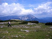 Schneealpe, Kleine Mitterbergwand Diese führt ein Schattendasein, so hinter Schneeberg und Rax. Zumindest dachte das. Oben begegneten uns Horden, die sich auf dem weitläufigen Plateau aber (statistisch) gut verteilten. Man muß halt die Hauptverkehrsrouten meiden. Wie viele andere Bergbegeisterte fuhren wir über die Mautstraße beim Michlabauern (zwischen Kapellen und Neuberg a.d. Mürz) hinauf bis zum Parkplatz (ca. 1440m), welcher gut gefüllt war. Ein kleines Stück stapften wir die breite Schotterstraße weiter um dann links auf den Kammweg hinauf zu steigen. Den Einstieg übersieht man leicht, er ist aber rot markiert. Dort oben geht es kurz steil rauf, die Schweißtropfen sind es aber wert. Oben bogen wir zum Sender hin ab und folgten dann einem etwas abenteuerlichen Latschenpfad bis zum Einstieg in den 445er Weg nach Neuberg. Wir stiegen weiter auf, querten die Schotterstraße und bogen schließlich unterhalb des Schneealpenhauses nach NW ab. Weglos über feine Almenböden erreichten wir bald den Schusterstuhl (1875m). Die Sicht zum gut besuchten Windberg (1903m) war einwandfrei. Weiter ging es hin zur Kleinen Mitterbergwand (1863m). Über die Rückseite gelangt man problemlos hinauf, wir wählten aber kleine Kraxelrouten im I bzw. II Schwierigkeitsgrad. Einfach aber brüchig! Die Aussicht auf die umliegenden Bergzipfel war sehr fein. So manchen kannte ich schon; Gippel, Sonnleitstein, Amaisbichl mit dem Grenzlandkamm und natürlich die Rax. Viel mehr erwarten mich wohl noch *g*. Wir pausierten genüßlich, etwas bedrängt von einem Schwarm kleiner fliegender Ameisen. Den Abstieg erledigten wir über die bequeme Flanke und gingen wieder zur Hochfläche zurück. Das nächste Ziel war die Lurgbauerhütte (1764m). Hier kann man der breiten Schotterstraße kaum entfliehen und uns begeneten ziemliche Menschenmassen. Zum Glück machten sie uns auf der Hütte Platz und wir bekamen einen schönen Sonnenplatz *schwitz. Die Küche bot reichliche Stärkung. Stärkung für den Rückweg, den wir schließlich auch irgendwann antreten mußten. Etwas langweilig, aber flott, legten wir die Strecke mit einigen kleineren Gegenanstiegen zurück und erreichten wohlbehalten aber etwas verstaubt wieder den Parkplatz. Diesen sehr schönen Wandertag ließen wir natürlich bei der Julia ausklingen. Wie immer ein ausgesprochenes Vergnügen. Durch die Zufahrt mit dem Auto waren es diesmal nur schwach 650Hm, aber immerhin gut 18km Genußwanderei. Bilderchen gibt es natürlich hier, aber auch dort. |